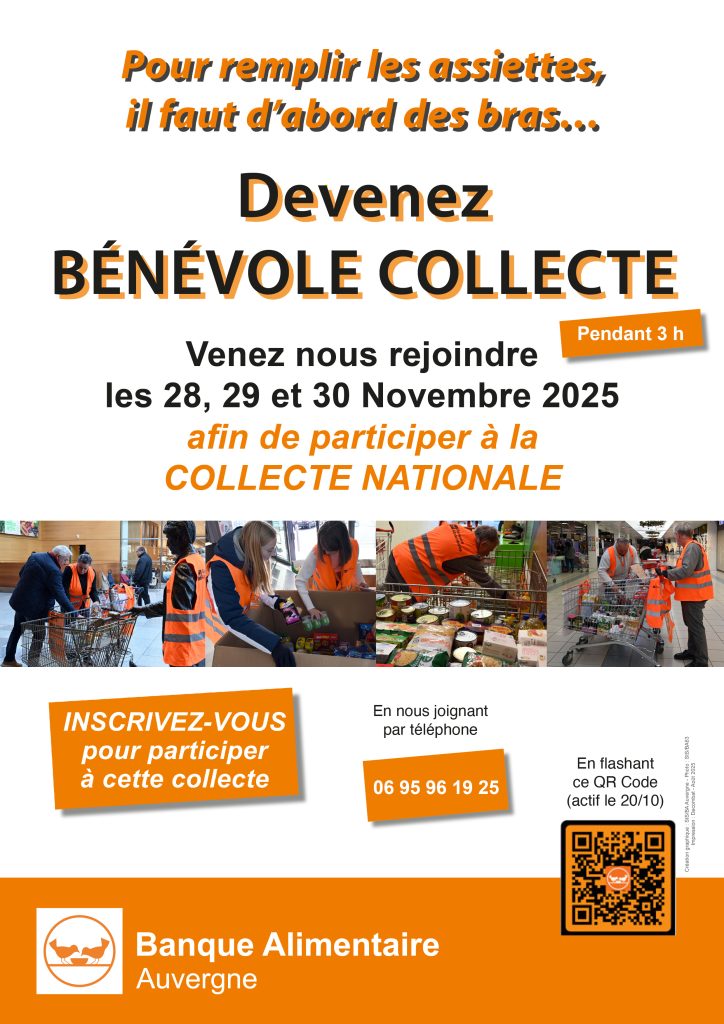 Les 28, 29 et 30 novembre 2025, la Banque Alimentaire d’Auvergne organise sa grande Collecte Nationale.