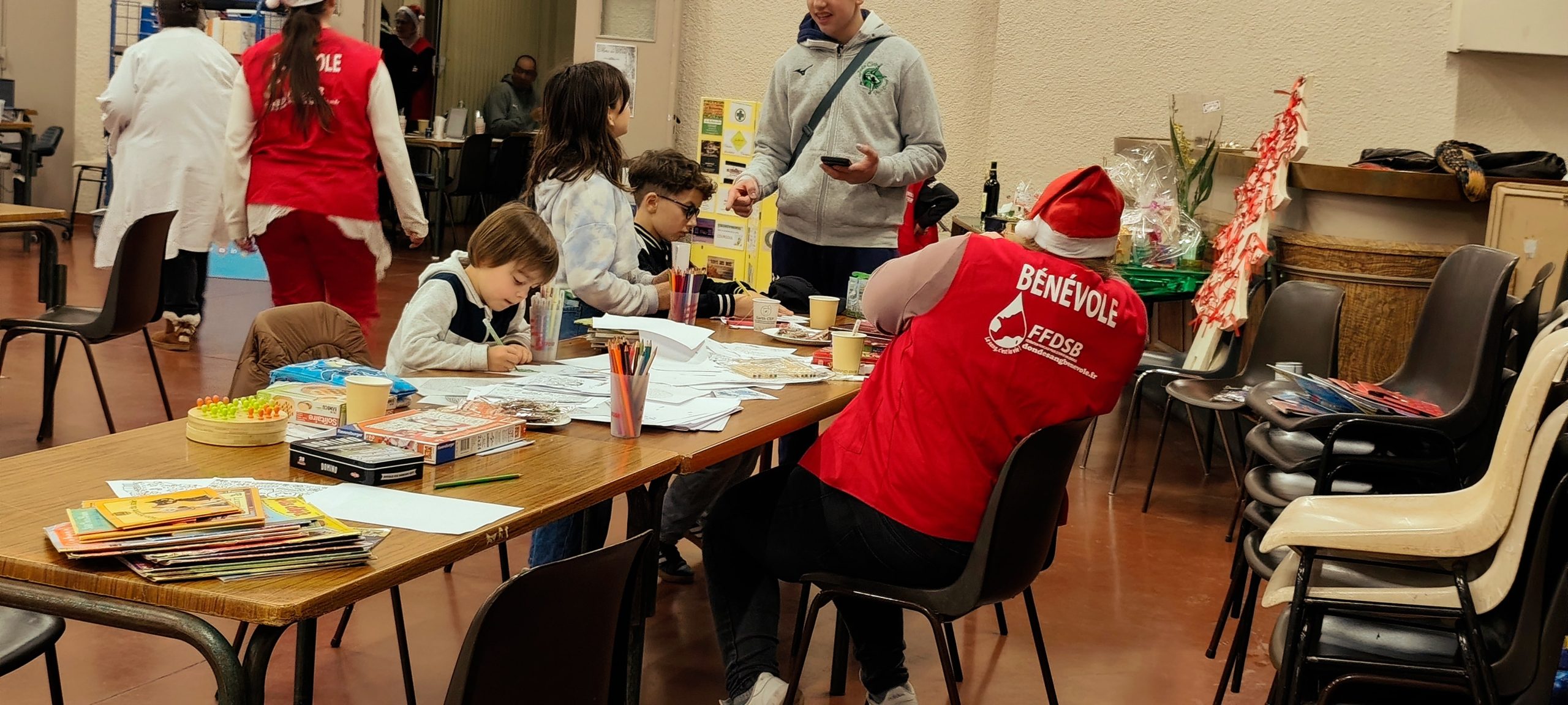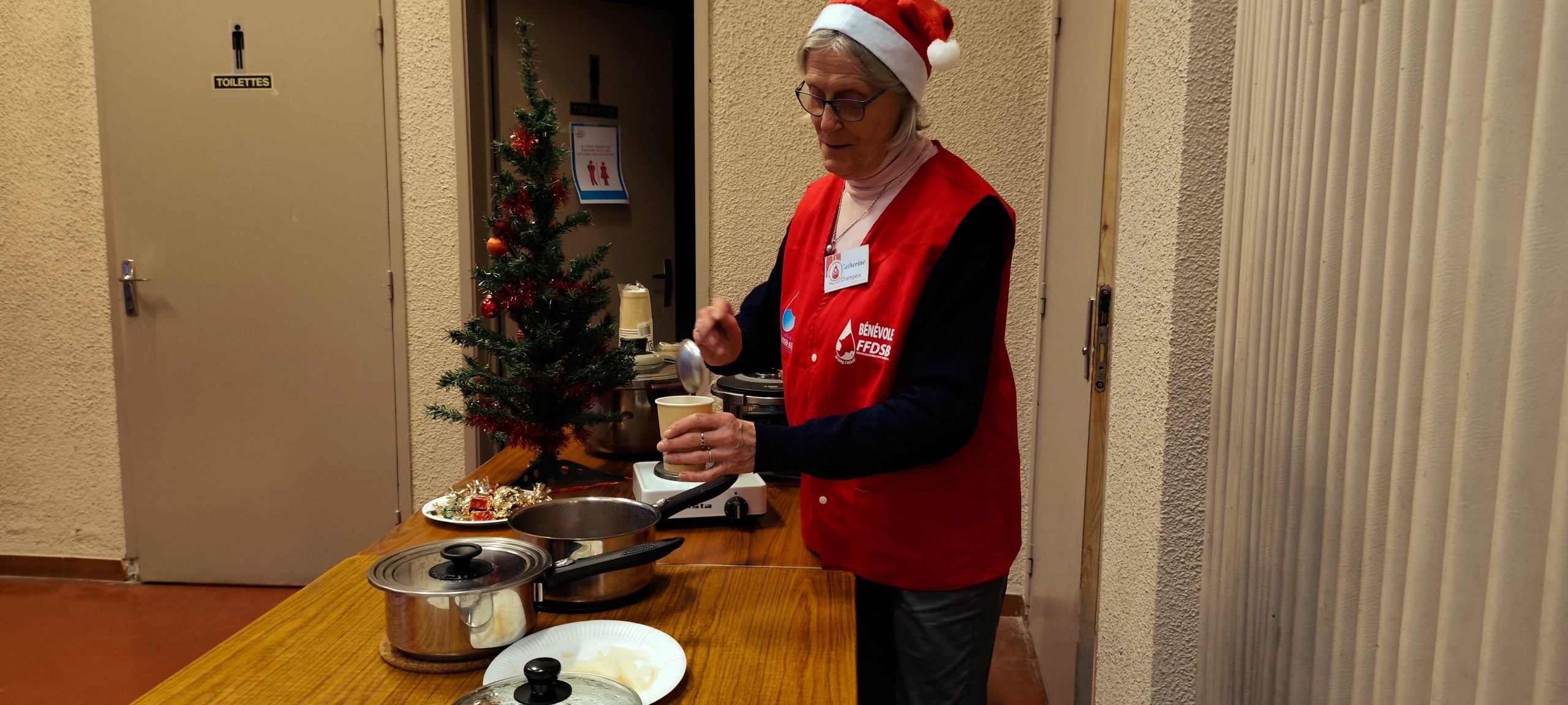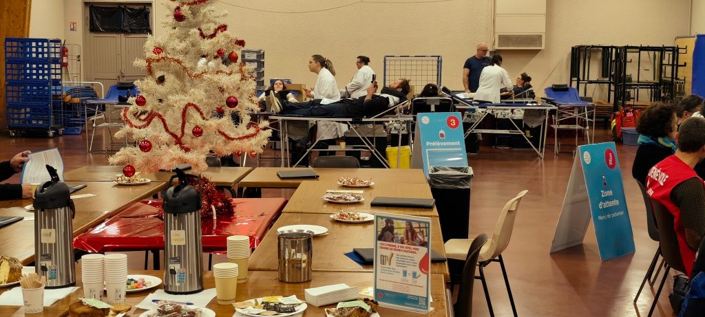 Vendredi 19 décembre, la salle polyvalente a accueilli une collecte de sang festive, organisée par l’Association des Donneurs de Sang Bénévoles de Champeix. Jus de fruits chauds aux épices, décorations de Noël, sapin et ambiance chaleureuse ont accompagné ce moment de solidarité.