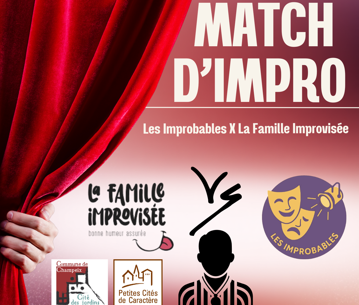 Deux équipes, un arbitre… zéro texte ! Les Improbables affrontent La Famille Improvisée dans un match d’improvisation plein d’énergie, d’humour et de surprises. Le public participe, vote et devient acteur du spectacle. Un moment convivial et ludique, accessible à toute la famille !