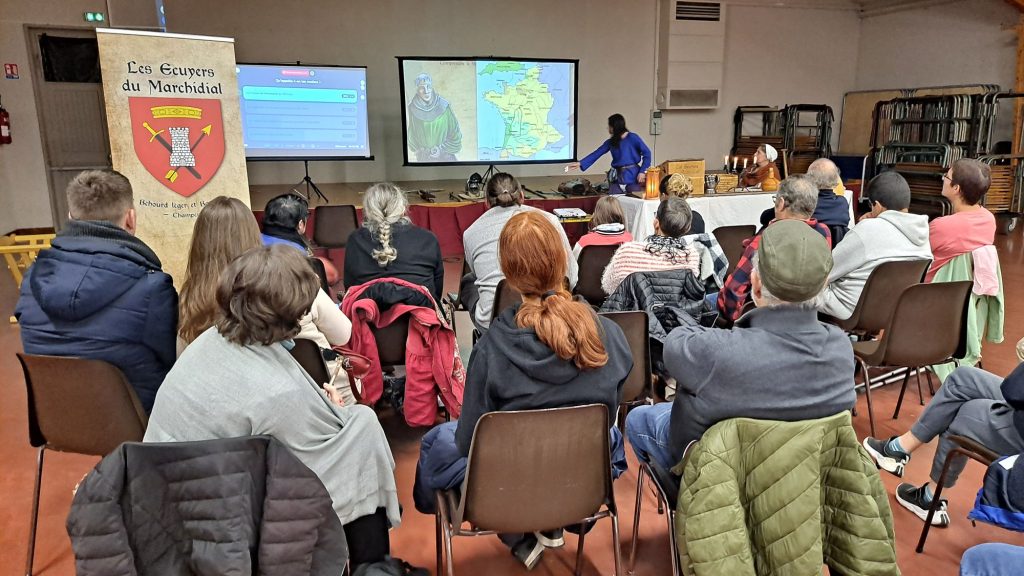 Cette soirée ludique et culturelle a permis d’explorer la vie de Guillaume II de Murol et de mieux comprendre le quotidien au Moyen Âge : féodalité, guerre de Cent Ans, santé, éducation, chevalerie…