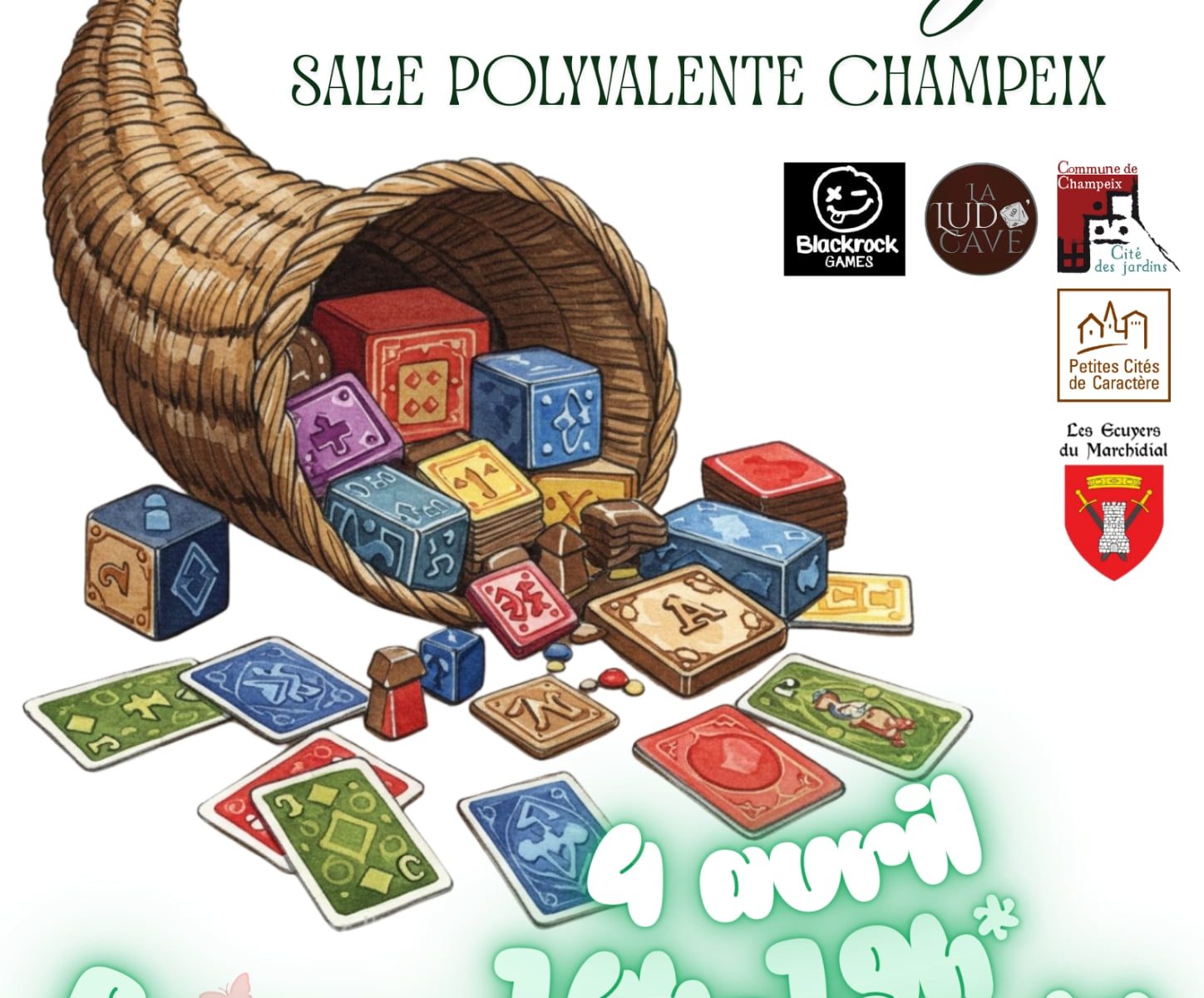 Que vous soyez un noble architecte de jeux de gestion ou un fier guerrier des jeux d’ambiance, venez partager ce grand banquet ludique soutenu par nos fidèles alliés (Blackrock Games, La Ludo Cave, la Commune de Champeix et les Écuyers du Marchidial).