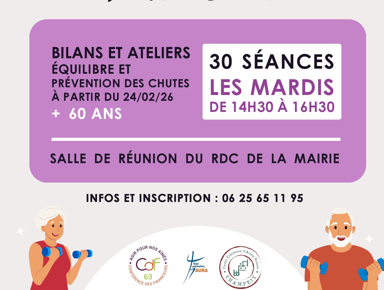 C’est dans ce cadre que le CCAS de Champeix propose un nouveau cycle de bilans et ateliers ÂGE’ILITÉ, dédiés à l’équilibre, à la prévention des chutes et au maintien de l’autonomie, animés par des professionnels de santé 👩⚕️👨⚕️